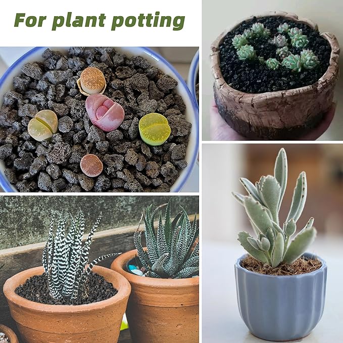 - 🌿【PERFECT SIZE 】These small lava rocks gravel have an average size of about 1/2 inch and exhibit slight variations in shape, adding a diverse aesthetic to your beloved plants. They are perfect for direct potting, making them an ideal choice. Typically, they are utilized as a soil additive or top dressing in the art of bonsai.
