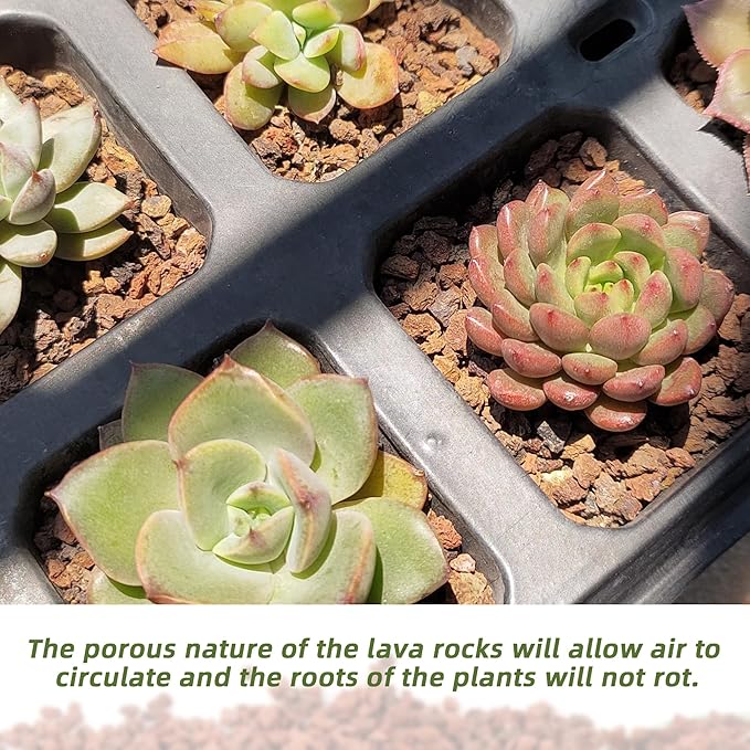 - 🍅【IDEAL FOR DRAINAGE】These lava rocks for plants are completely natural and organic. Simply place the lava rocks at the bottom of the planter to allow water to collect without endangering the roots. The porous nature of lava rocks enables them to absorb and gradually release any excess water back to the plant, making them ideal for preventing root rot.