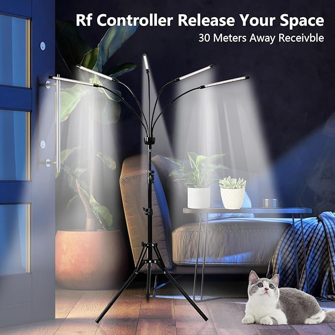 - Grow Light with Adjustable Stand:Equipped with stable, durable tripod stand and can be adjusted from 15” to 60”, suitable for more differents size house plants. Widely apply to family balcony seeding/breeding, gardening, flower show, potted plants, especially tall and large plants.