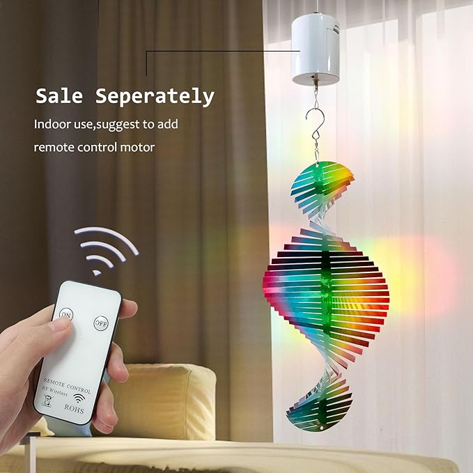 - ★【Easy to Hanging Wind Sculptures】15 inch wind spinner+3inch 360° swivel hooks in total long,0.55 pounds net weight.Includes a swivel hanging hook so rainbow spinner outdoor can twirl in the breeze.Hanging yard spinners are easy to open to angle you desire and conveniently hang up wherever you like. When used with our power motor,it can bring you the joy of 3D rotation even when there is no wind.