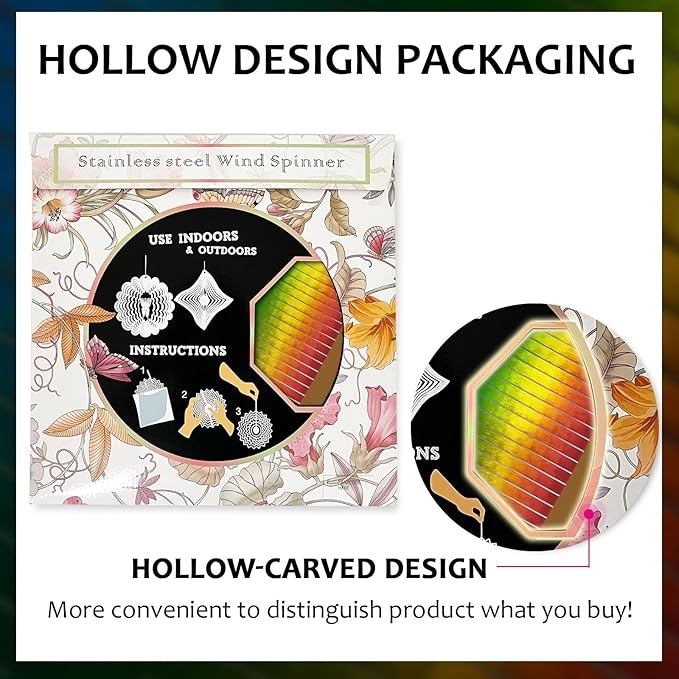 - ★【Exquisite packaging Wind Spinners Outdoor】Our wind spinner for garden yard ornaments outdoors machine has a beautifully designed colorful box packaging,as a gift of choice,you can save the cost of additional gift packaging!And in the middle of our gift box also designed a hollow design, this humanized design, more convenient for you to distinguish the purchase of garden wind spinner! You don't have to worry about not being able to tell the difference between the different wind spinners outdoor you buy!