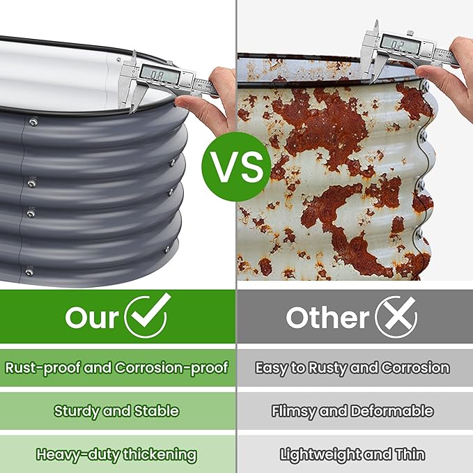 - Safety and Eco Friendly: We use USDA-approved paint that is 100% safe and eco friendly,so you can use our products with peace of mind.Plus,Our garden bed features an oval design that eliminates sharp corners and is covered with heavy-duty rubber edging to prevent injuries.