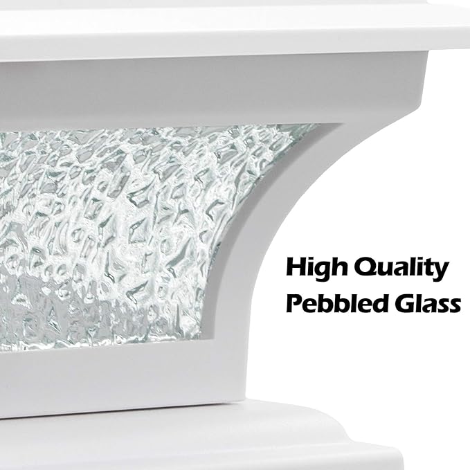 - 【High Quality Pebbled Glass】The 4 LEDs bulb in each cap can stay lit for up to 8-12 hours, and the pebbled glass will retain its color and beauty for years to come. Light easily mounts on top of any standard 4x4, 5x5, 6x6, inch wooden post.