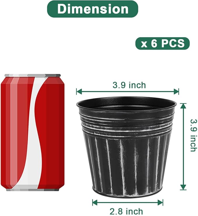 - 【Size of Metal Pots】There are 6pcs metal planters in a package, Topper opening diameter 3.9 inch, bottom diameter 2.8 inch, barrel high 3.9 inch.