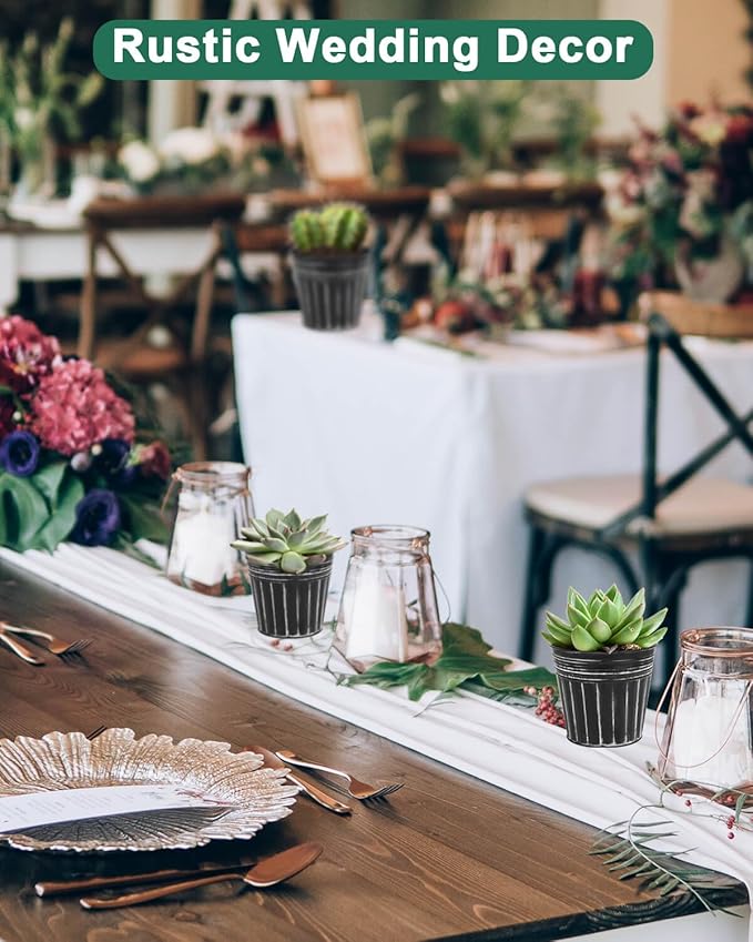 - 【Great for More Scenes】Metal bucket flower pot with rustic coating will not fade and crack, suits for outdoor & indoor, windowsill, living room, kitchen, balcony, garden and more. Used for succulents, herbs or other flowers. Rustic and vintage finish great for decorating your home or office, also used as a gift for landscape design lovers