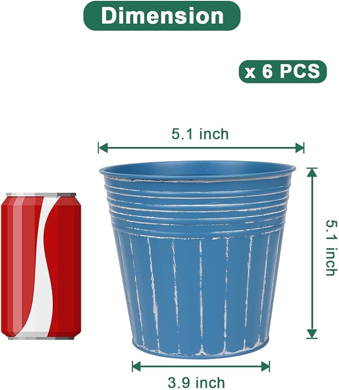 - 【Size of Metal Pots】There are 6pcs metal planters in a package, Topper opening diameter 5.1 inch, bottom diameter 3.9 inch, barrel high 5.1 inch.