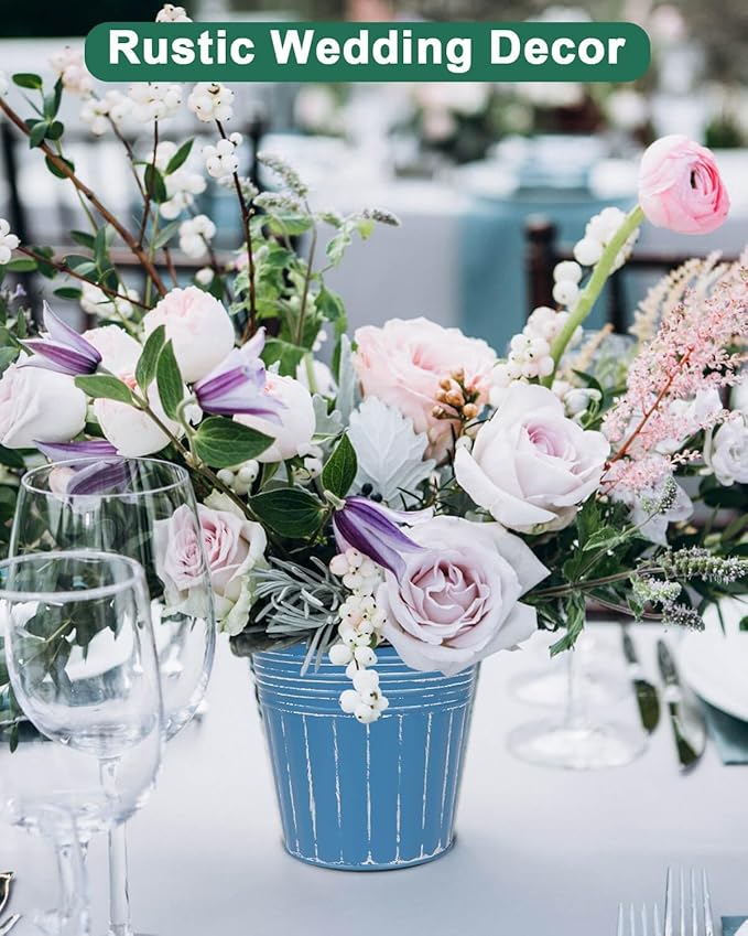 - 【Great for More Scenes】Metal bucket flower pot with rustic coating will not fade and crack, suits for outdoor & indoor, windowsill, living room, kitchen, balcony, garden and more. Used for succulents, herbs or other flowers. Rustic and vintage finish great for decorating your home or office, also used as a gift for landscape design lovers