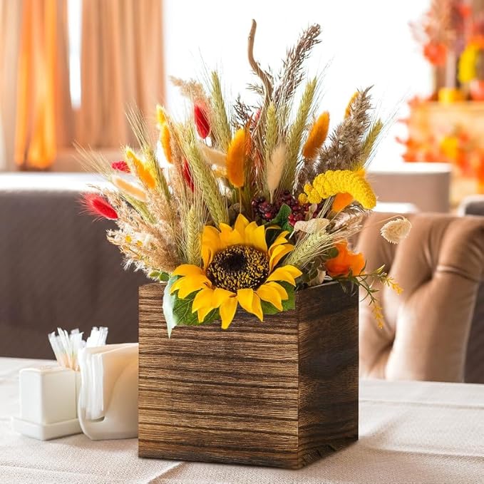 - Rustic Style: the rustic style of the square wooden box adds a touch of charm and elegance to your home decor, its natural look creates a warm and inviting atmosphere that everyone will appreciate; Warm reminder: due to the soft material of the floral clay, some dents will inevitably be caused during transportation; This is normal, please understand