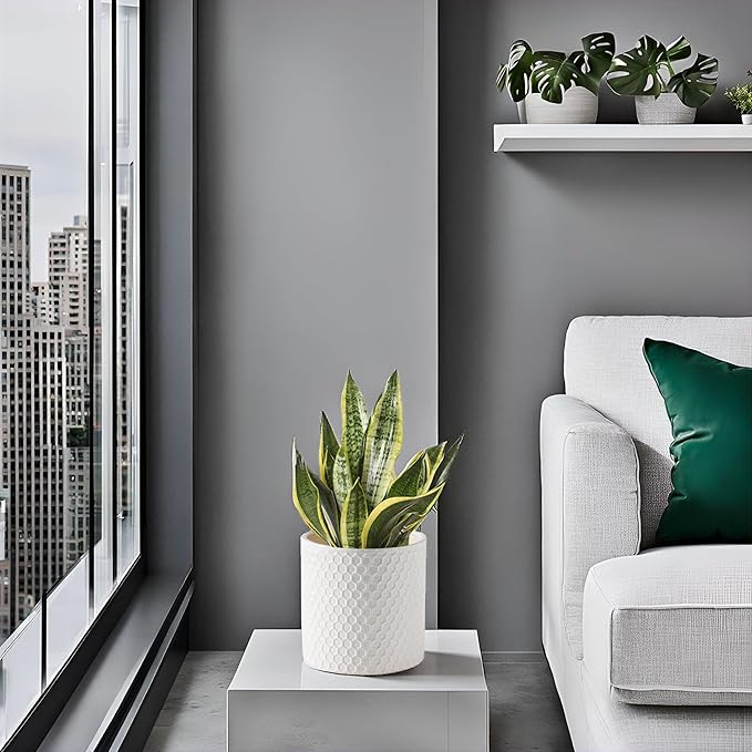 Docrin Ceramic Planters Indoor: 8 Inch Plant Pot with Drainage Holes for Home/Office - White Honeycomb