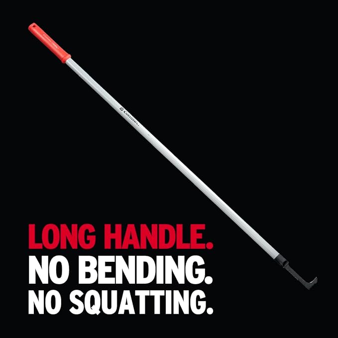 - Long-reach handle reduces back pain by eliminating the need to bend down to weed or till soil