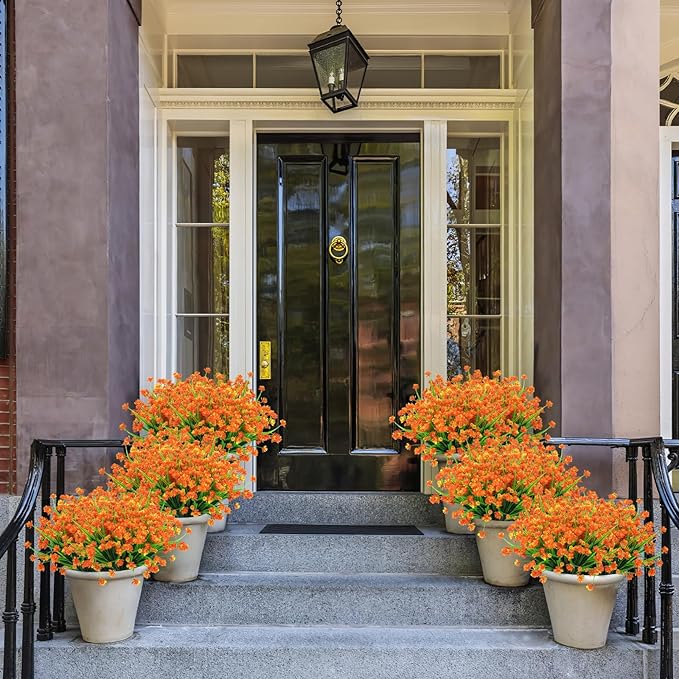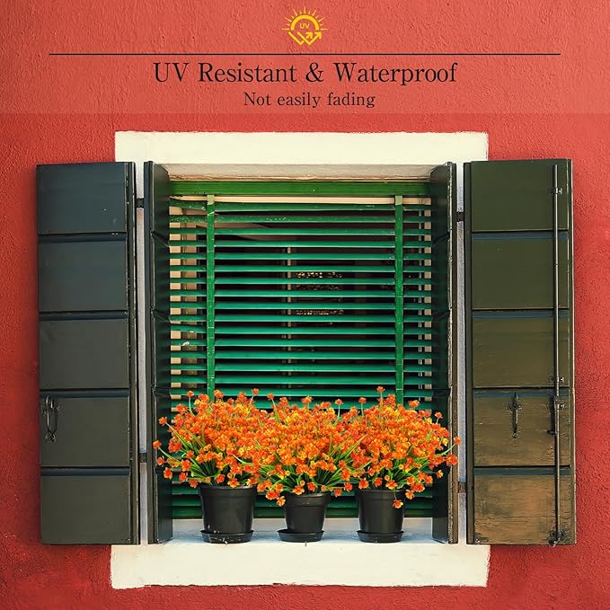- Perfect for Outdoor/Indoor - Plastic flowers are ideal for outdoor porches,walkway,terraces windox box,front yard,pots,hanging planters,gardens,landscape,windowsills,allow you have beautiful color all year around.Also suit for birthdays,weddings,memorial place or grave,they can live anywhere and have withstood heavy rain storms and winds