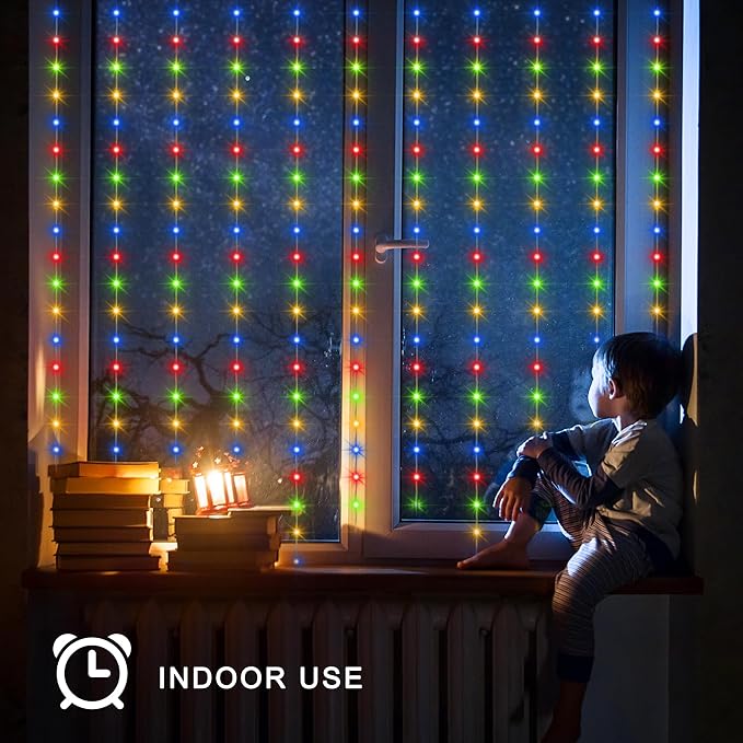 - 8 Modes & Timer Function: With 8 different modes to choose from, including fireflies flashing, waves, fading, chasing/flashing, and more, you can customize the lighting to suit any occasion. Plus, the built-in timer ensures that the LED curtain Christmas lights turn on at dusk and turn off automatically, saving energy and hassle.