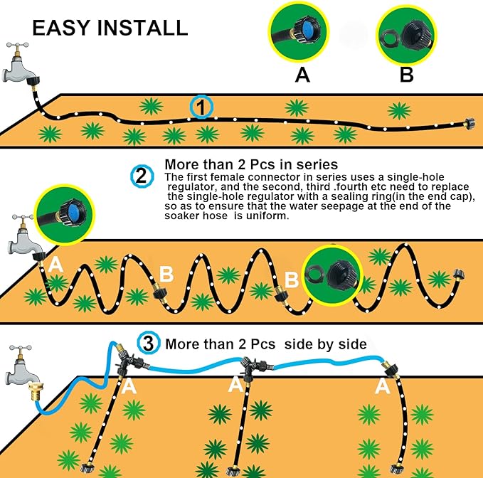 Cuckoo Soaker Hose 50ft With 1/2" Diameter-Soaker Hose Kit with Heavy Duty Rubber Hose for Irrigation-Save 70% Water-Great for Garden Flower Beds,Trees,Vegetables amd Seedings(1/2X50-2)