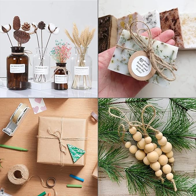- 【Decorative and Diy】 Craft The Jute Twine string is widely used in everyday life. For gift wrapping or art DIY crafts ,make discarded empty bottles into beautiful handmade vases. You can also use it to hang photos,bottles,Mason Jars,wedding and party favors,making bouquets etc.Use it to bind plants to give them strong support and better growth. The multi-function jute rope twine will bring you many benefits and surprises