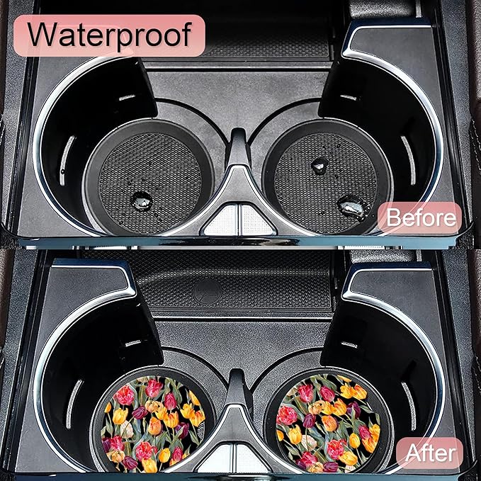 - Material:Cork coaster protects your car from spills and stains, absorbs any moisture or liquid that may spill from the cup, keeps your car cup holder dry and clean.