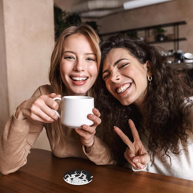 Octopus Tentacles Car Coasters,Ceramic Absorbent Cup Holders with Finger Notch & Cork Base Car Assecories for Women/Men 2.6"(2 Pieces)