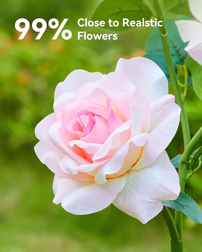 - 2024 NEWST VERSION: These solar flower lights outdoor with flower of different colors,the material and color of the solar flower are 95 % close to real flowers, the height of 28.4inch,so they are more larger and more realistic than other outdoor solar flowers