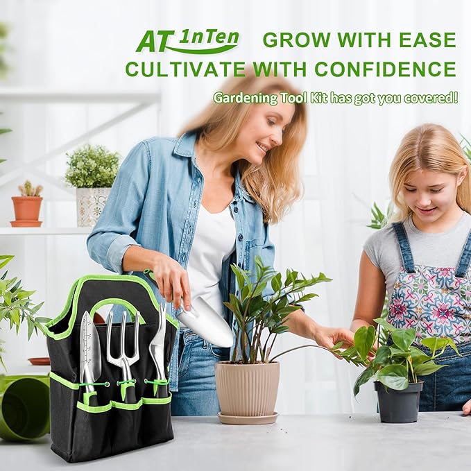 - ππππππππ ππππππ πππππ & ππππππππ ππππ πππ:Upgrade your gardening game with AT1NTEN's 8-pack garden tool set. Say goodbye to cheap, unreliable tools and get everything you need for a perfect garden. The durable material allows you to work in any soil, even hard and gravelly ones, while the non-slip rubber grip ensures comfortable and secure handling for long periods of time. Don't settle for less - with the enlarger tote bag, 15.35*19.3 inch make store a breeze.