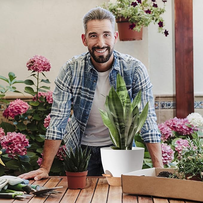 White Self Watering Pots with Drainage Planting Pots for HousePlants Plastic Flower Pots Outdoor Plant Pots Gift Idea Decorative Flower Pots Draining Pots for Indoor Plants