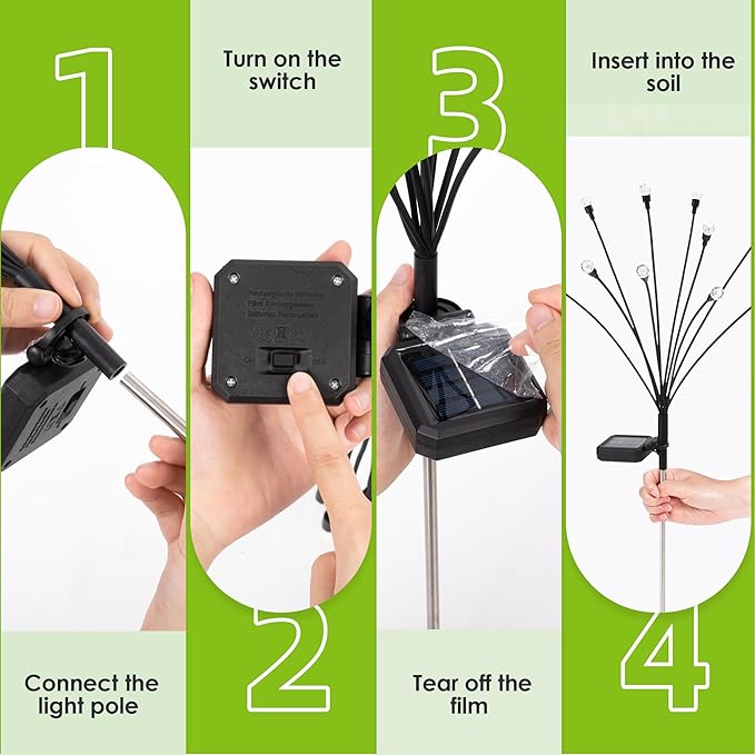 - 【IP65 Waterproof & Durable】The IP65 solar lights outdoor waterproof with a large 600mAh battery capacity, which can withstand any extreme weather condition,our solar firefly lights can illuminate your garden all night long, even on rainy days, you can enjoy your lights all year round.