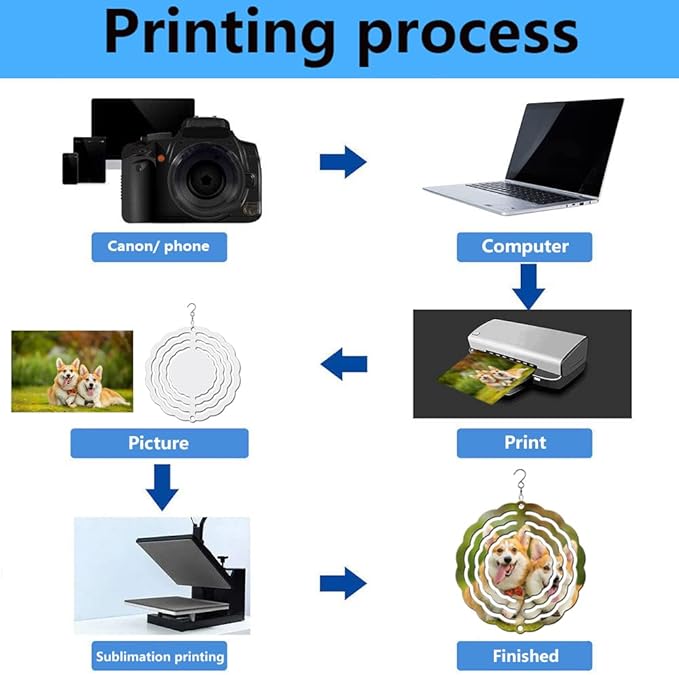 - 【Sublimation Blanks wind spinner】 sublimation blank wind spinner is a great piece of outdoor metal yard art or hanging décor which comes with a white base coat and a high gloss finish. Like all our products, this sublimation blank wind spinner is powder-coated for maximum rust resistance, making it ideal for use as an outdoor metal yard art.