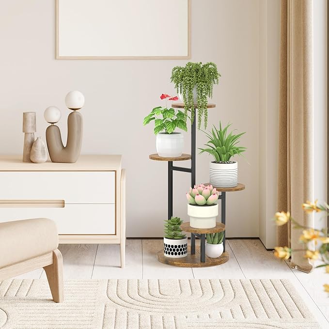 - Spacing Saving & Modern Decor: This plant holders indoor stand can perfectly fit into the corner of your home, adds spice to an empty corner while saving space, allowing you to maximise use of space; As a multi-functional shelf, you can not only display your plants on it, but also place photos, books, and other items, and it is also a great gift choice