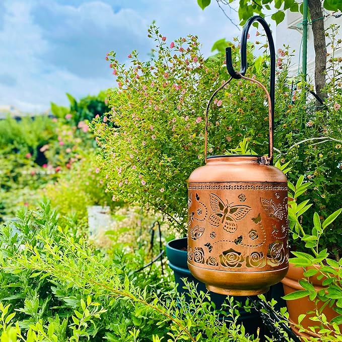 - 【Perfect Garden Decorations】- Butterfly solar lantern can project unique and beautiful patterns in a dim environment, creating a gorgeous and warm atmosphere to bring life and fun to your garden and attract your family or friends. The unique hollow out design and beautiful antique bronze color give it an artistic touch, perfect for decorating gardens, backyards, corners, Outside, sidewalks and many other scenes.