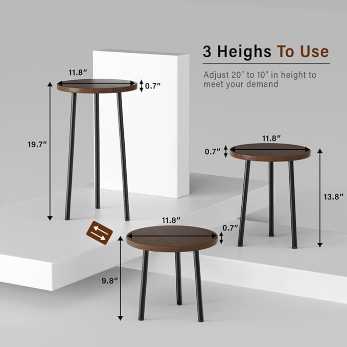 - High Quality Material - Dark wood adjustable 3 leg plant stand is 11.8 " D and 20" H & 11.8" D and 14" H, suitable for indoor and outdoor. The wooden surface is covered with UV paint, which ensuring it would not fade,crack and waterproof even in the blazing sun or rain.