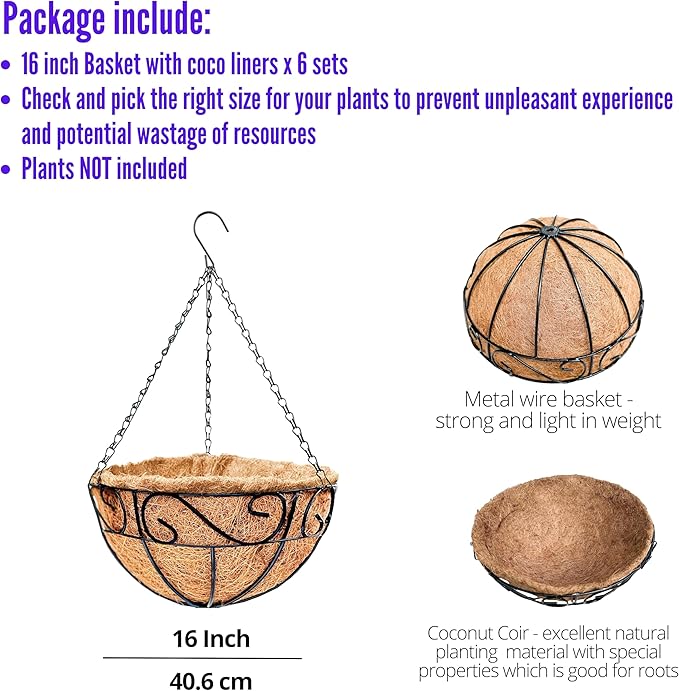 - SHOP WITH CONFIDENCE: USPTO DESIGN PATENT PENDING. Each hanging pot with coco coir liner is carefully inspected before shipping to ensure quality. If you encounter any issues or have a change of mind, you can return the baskets for a refund or exchange for a new set.
