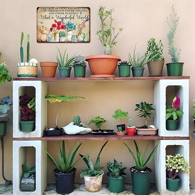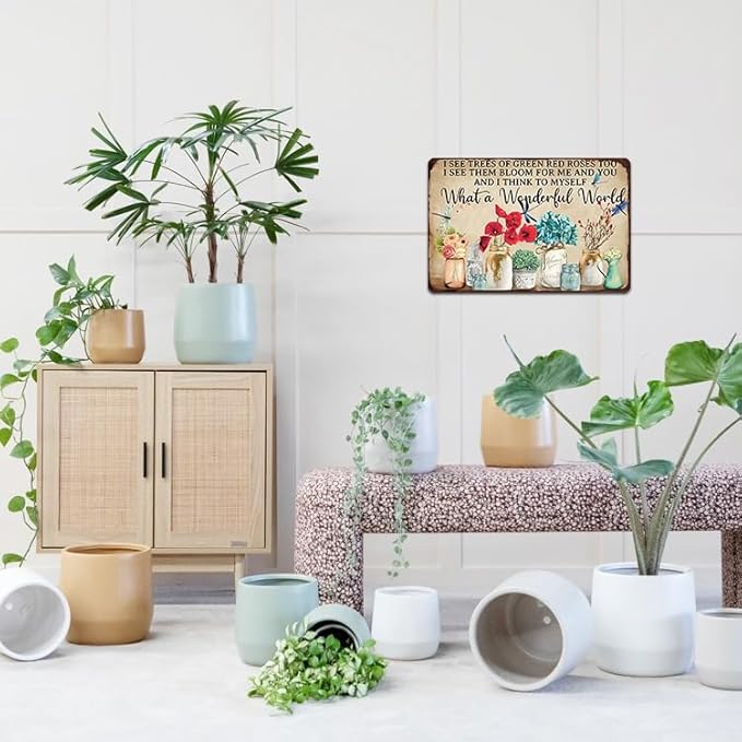 Artlunar Funny Garden Plant Flower Sign Outside Yard Art Decor - What A Wonderful World, 12" x 8" (985)