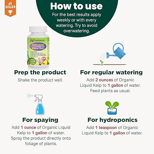 - 🌳🌱 Nurture Bonsai Brilliance: Elevate the artistry of your Bonsai trees with Bonsai-Specific Organic Liquid Kelp Fertilizer by Gardenera. Unleash the full potential of your miniature masterpieces and witness their exquisite growth and natural beauty.