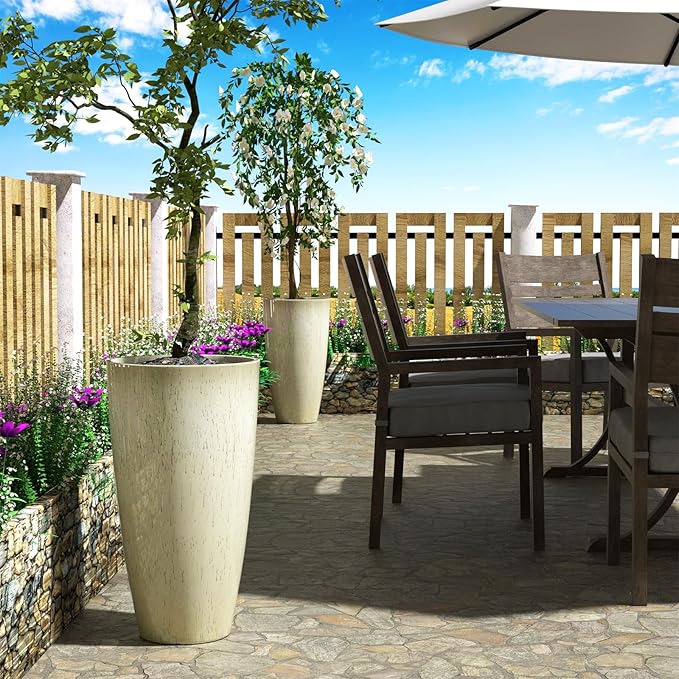 - DURABLE MATERIAL: Tall planter is made of plastic and stone composite, with beautiful texture and not heavy body. Thickened inner-wall makes it crack resistant, scratch resistant, UV resistant, colorfast all day long.
