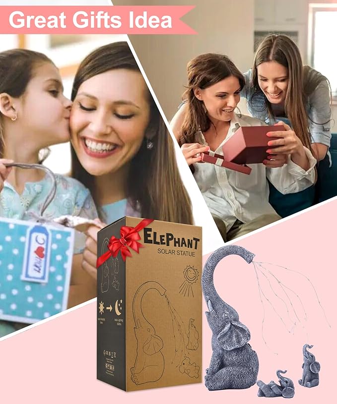 Solar Elephant Statues for Garden Decor: Outdoor Sculptures for Lawn Ornaments - Porch Patio Balcony Front Yard Birthday Gifts for Mom Grandma Women