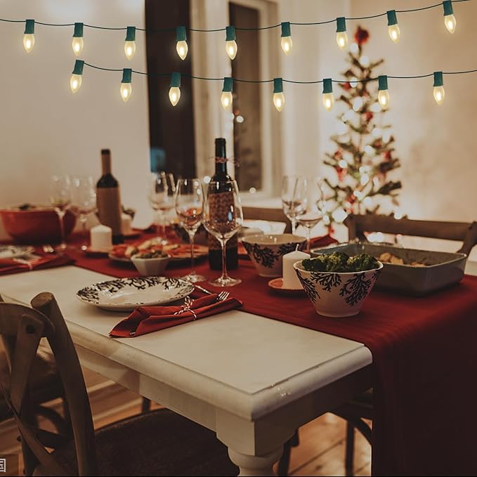 - 🌟 Durable and Long-Lasting: Plug in christmas lights outdoor is made of shatterproof and waterpoof led frosted white bulbs, The soft, frosted finish on the C7 LED bulbs provides a gentle, ambient glow that's perfect for creating an enchanting atmosphere. Long lifespan up to 30,000 hours. led frosted white patio lights suitable for both indoor and outdoor use, our C7 LED string lights are built to withstand the elements, making them a durable choice for year-round decoration.