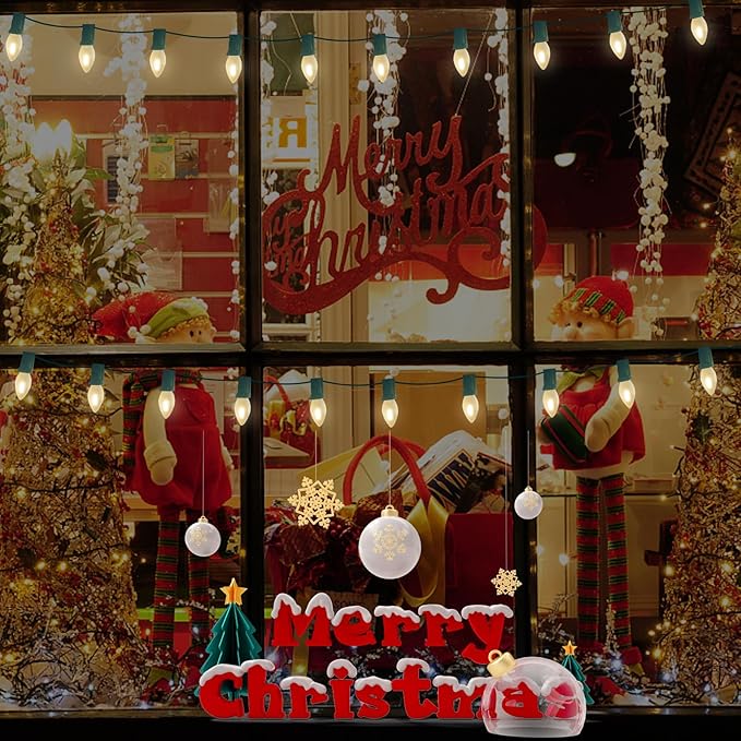 - 🌟 Versatile Application: C7 led christmas decorations lights glow a warm white lights, vintage Christmas light string is dimmable, lights dimming requires a dimmer. c7 led frosted white christmas lights can be used both indoor and outdoor, such as the bedroom, bar, window, Christmas tree, party, wedding, window, holidays, festivals, shows, restaurants, hotels, shopping centers, patio, or porch, pathway, roofline decorations and lightings