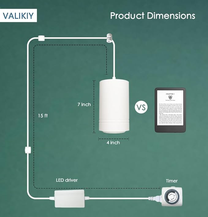 - Easy Setup and Use: This stylish plant lamp comes with all needed hardwares for hanging and cord organization, also includes a timer for convenient daily use. Just plug it into any 120 volt household outlet and work.