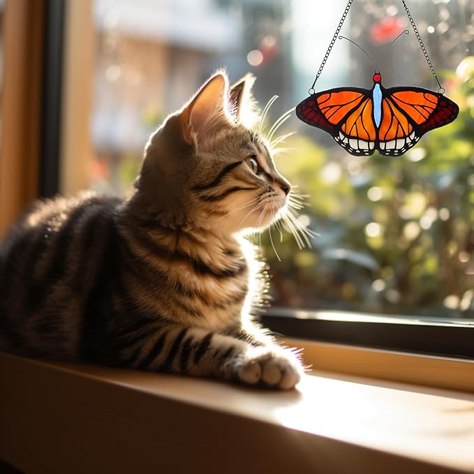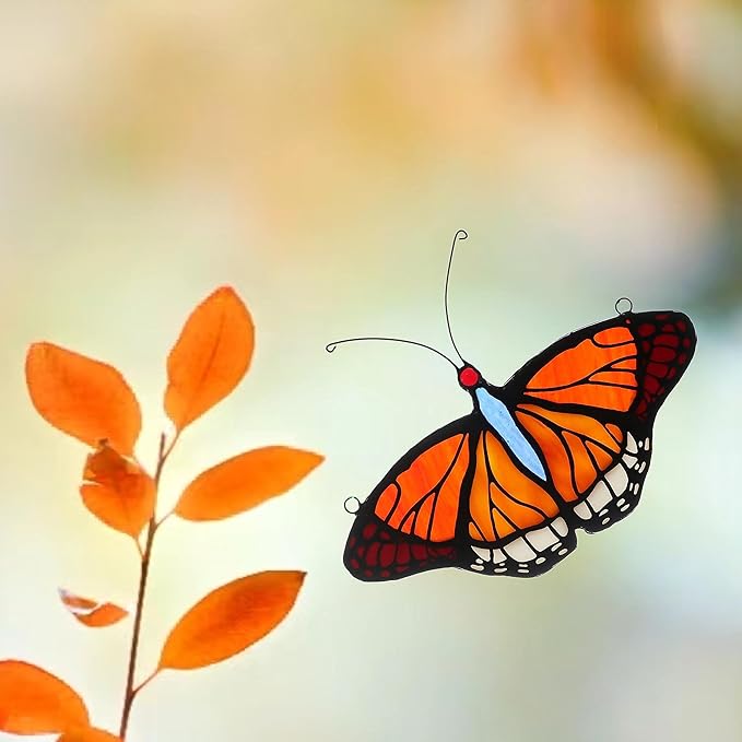 Stained Glass Window Hangings Butterfly Tiffany Style Butterfly Suncatcher for Window Hanging Suncatchers Handcrafted Ornament (Yellow)