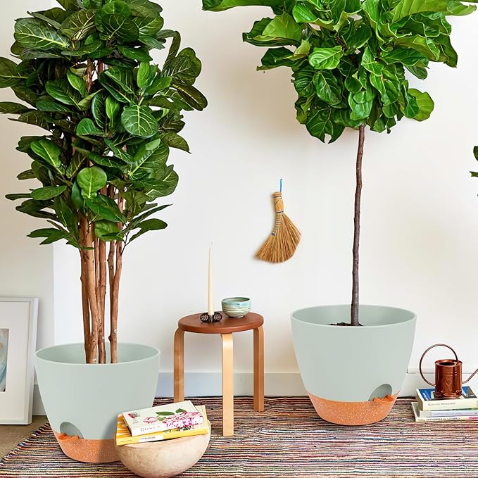GARDIFE 12 inch planters, Plant Pots,Self Watering Pots, 2 Pack Large Plastic Flower pots with Deep Reservior and High Drainage Holes for Indoor Outdoor Plants and Flowers, Green