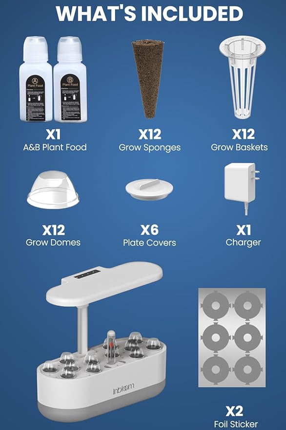 inBloom 12 Pods Hydroponics Growing System Indoor Garden with LED Grow Light and Pod Kit, Plants Germination Kit with 4.2L Water Pump Accelerate, Height Adjustable, Gardening Gifts for Women, White
