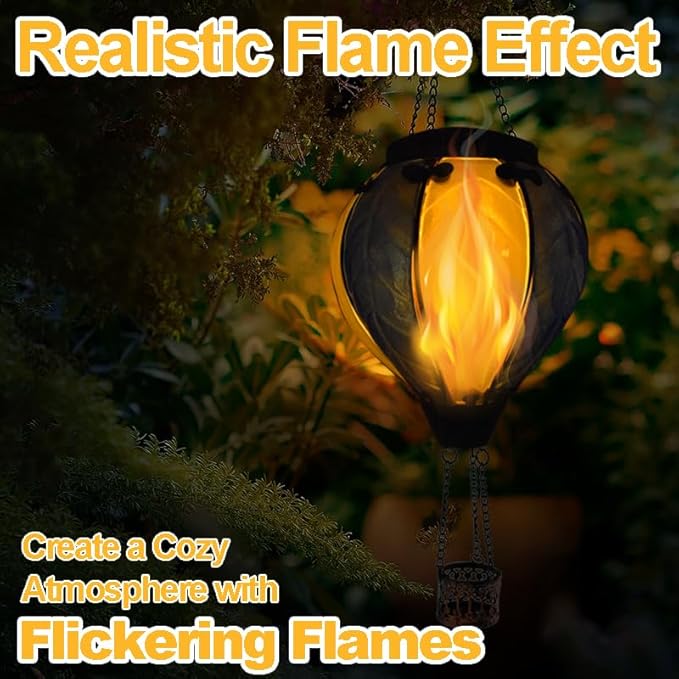 - Hot Air Balloon Design: The gradient color solar hot air balloon is made of thick glass and a realistic flame lights; When the sun goes down, the flickering flame, which is perfect for decorating your garden, effects resembles a real hot air balloon