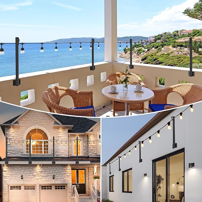- Superior Quality: Suchtale Hanging String Light Poles showcase a top-tier steel build coated in Waterproof and rust-proof black coating, guaranteeing remarkable protection against rust and corrosion. The metal pole is reinforced, enhancing its durability with a 0.98" diameter and 1.2mm thickness, boosting its load-bearing ability and extending its lifespan. It stands steadfast against diverse weather conditions, maintaining its resilience even in the presence of strong winds or storms.