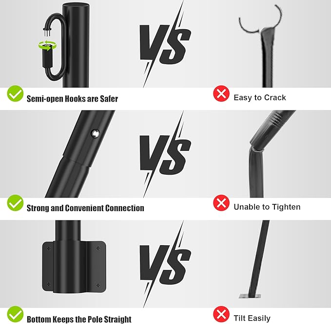 - Superior Quality: Suchtale Hanging String Light Poles showcase a top-tier steel build coated in Waterproof and rust-proof black coating, guaranteeing remarkable protection against rust and corrosion. The metal pole is reinforced, enhancing its durability with a 0.98" diameter and 1.2mm thickness, boosting its load-bearing ability and extending its lifespan. It stands steadfast against diverse weather conditions, maintaining its resilience even in the presence of strong winds or storms.