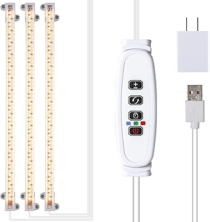 - 【Upgrade 144 Full Spectrum LEDs】The Grow Light has 144 LEDs and each light bar has 48pcs 3000K LEDs. High quality LEDs help plants grow with high light efficiency, high PPFD, low heat and longer lifespan. Indoor plant light emits all wavelengths from 380nm to 800nm, simulating natural sunlight to more effectively promote the growth of indoor plants.