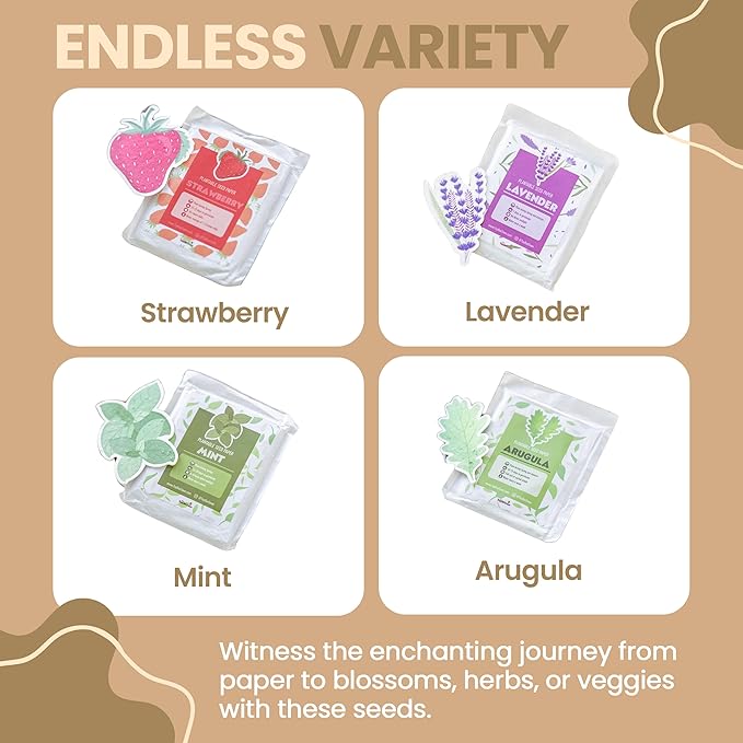 - [ Educational and Fun Tool for Teaching Children ] Through the captivating transformation from paper to vibrant flowers, flavorful herbs, or nutritious vegetables, both children and adults are immersed in the enchanting world of nature. This interactive journey fosters a deeper understanding and appreciation for the wonders of our environment, igniting a sense of responsibility towards environmental conservation.