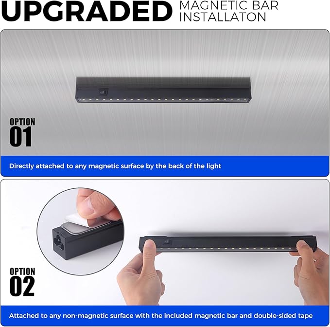 - Easy Installation: With included clips, cable ties, magnetic bar with double-sided tapes, you could install this indoor plant light by yourself in minutes. Our under cabinet grow lights can be directly attached to any magnetic surface and any non-magnetic surface. Plug and play, and you could link up to 16 lights in a series