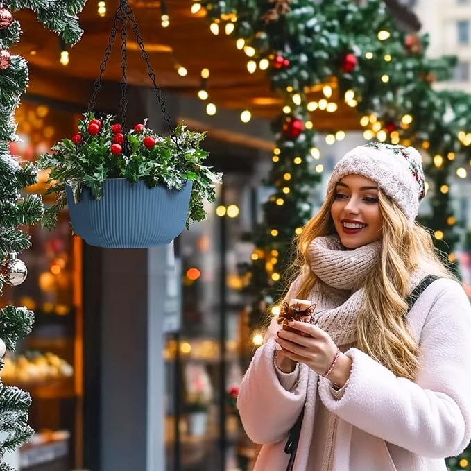 - 2 in 1 Planter pot: Our 8 inch blue hanging planters can be hung or placed. Installing the chain plant hanger to the hanging baskets is very simple. They can also easily be removed if you want pull the plant down for pruning or decorate tables