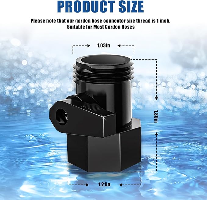 - Garden Hose Shut Off Valve Size : Plastic garden hose shut off valve measures 3/4", which is suitable for all the 3/4" garden hoses. (Please note that our garden hose connector size thread is 1 inch), Before making a purchase, please check your hose size.