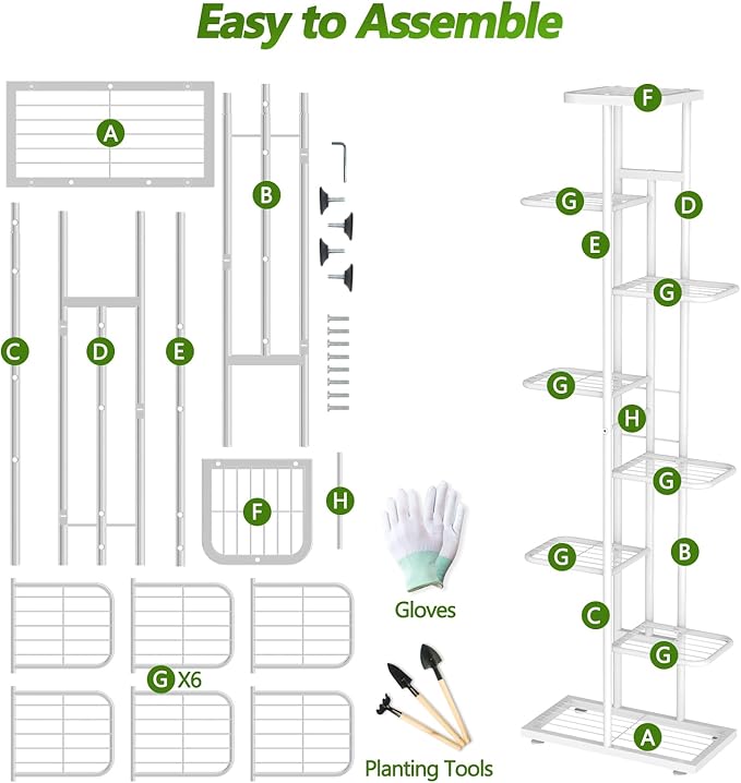 - 【Easy to Install and Clean】: Instruction is included in the package, you can easily complete multi tiers plant shelf without additional tools. Includes a pair of gloves and a set of planting tools, It's very rewarding to invite your family to grow plants together. The size of the tall plant stand is 16.1x 9 x 56 in/41 x 22 x 141cm.