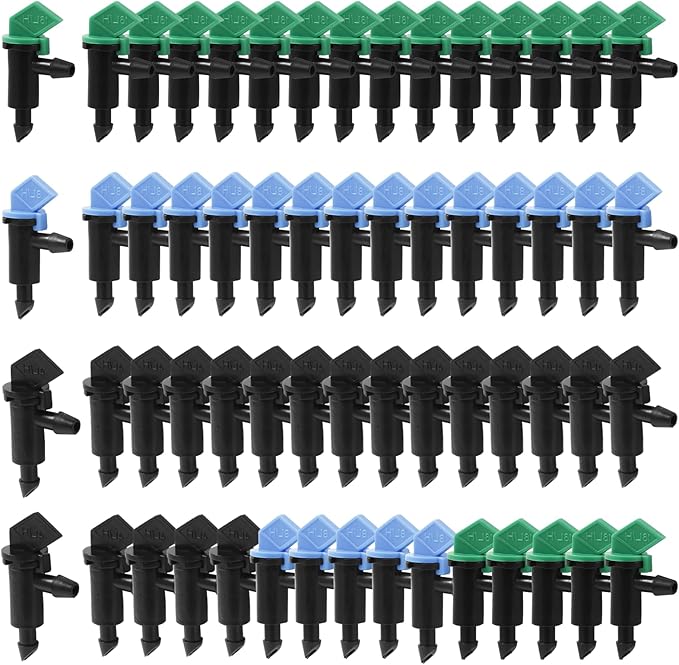 - [ Package Content ] Irrigation flag dropper contains a total of 60 pieces of 3 specifications, 20 pieces of each specification, the lid of each specification is different color, easy to distinguish. Black 1 gallon/hour, blue 2 gallons/hour, green 4 gallons/hour. Sufficient quantity can meet your daily use needs.