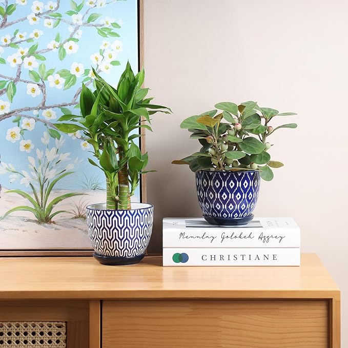 - 【STURDY QUALITY & PACKAGE】These 4.6" plant pots with the gorgeous appearance are made from sturdy ceramic, nontoxic. The complete smooth texture inner & outside makes them clean easily. Each flower pots with saucers are wrapped with thick foam to avoid damage to the flowerpot during transportation.